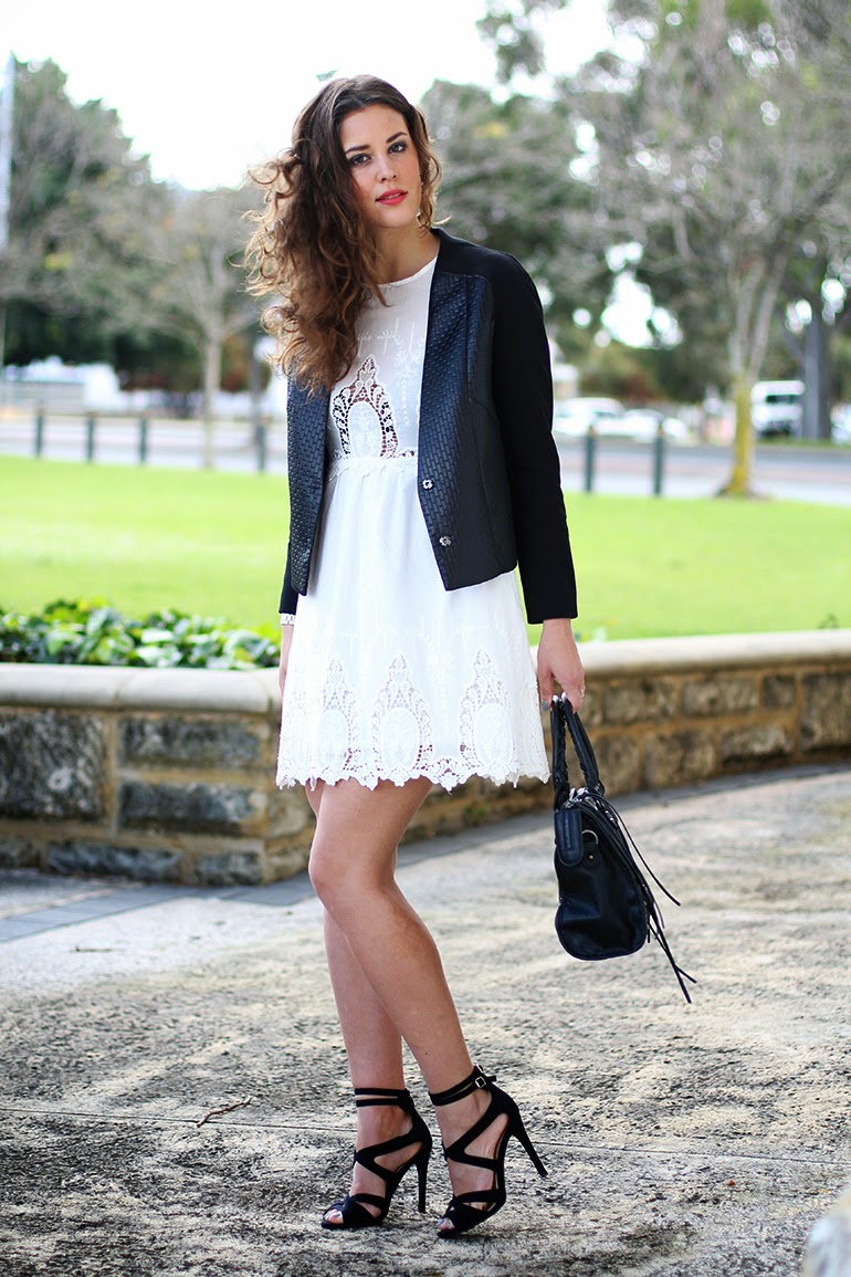 Cute white dresses paired with edgy black jackets. It’s one of those combo’s that can never do wrong with me. Even though I love this dress on its own as well, that day I was more in the mood for a slight edgy outfit.